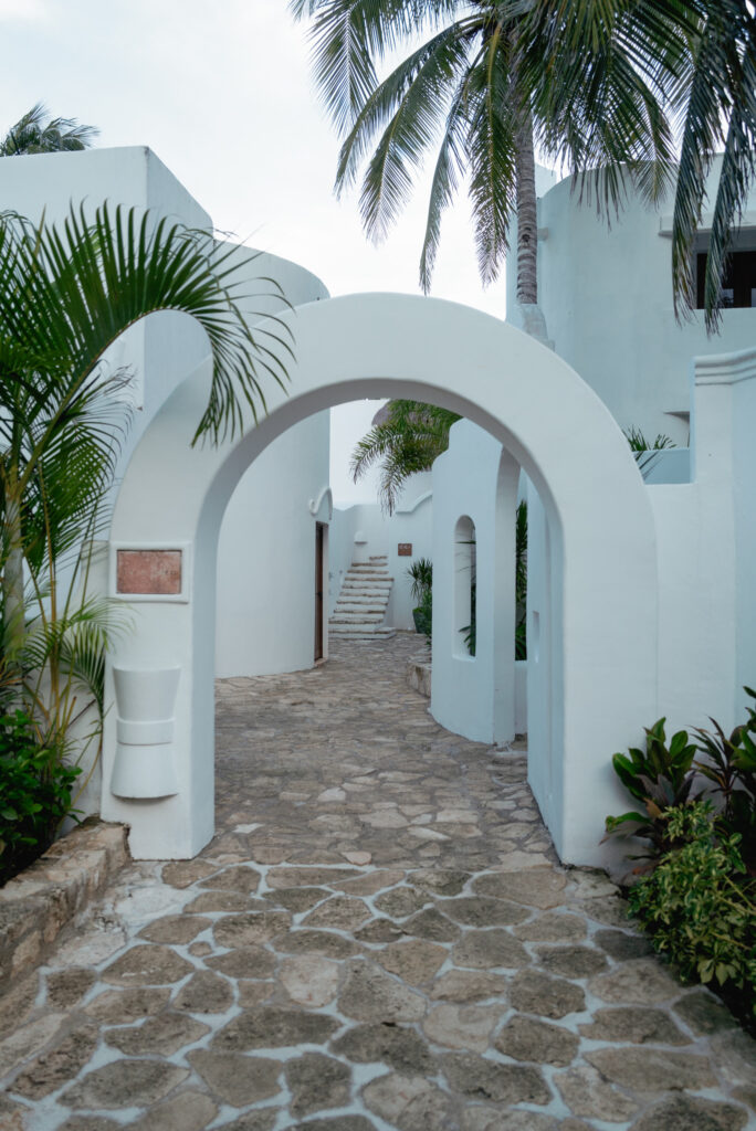The architecture of the resort also provides beautiful environments for photographs. White stucco walls, archways, and shaded courtyards create elegant spaces where couples can capture intimate moments together.