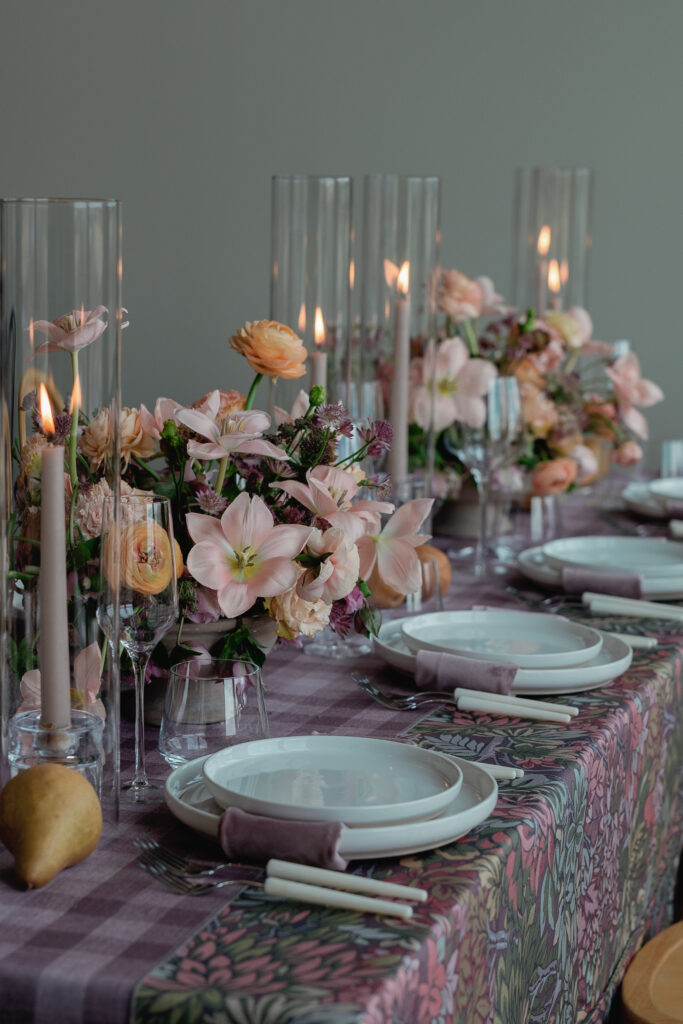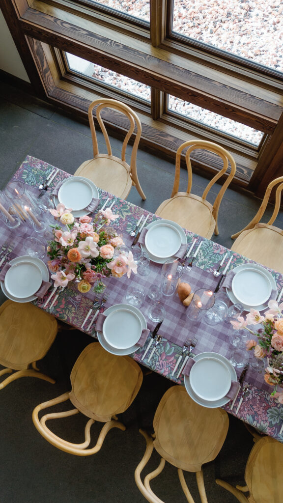 Dinner receptions frequently feature long tables, candlelight, and floral designs inspired by the natural environment. The interior spaces feel warm and inviting while still offering breathtaking views of the mountains beyond the windows.